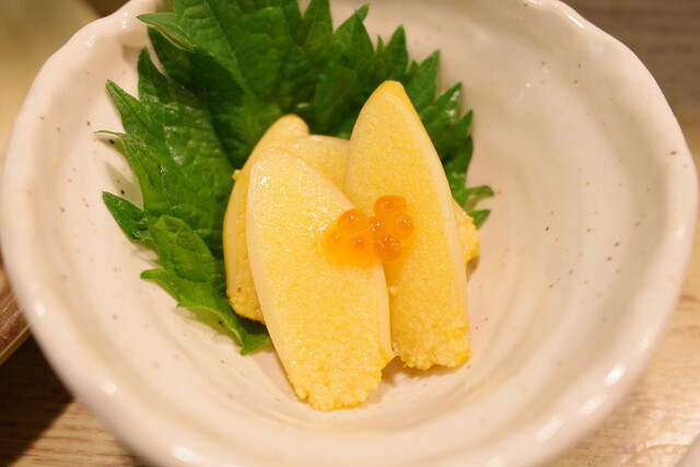 子持ちやりいか。ぷちぷちとした食感とイカの甘みがたまらない一品。